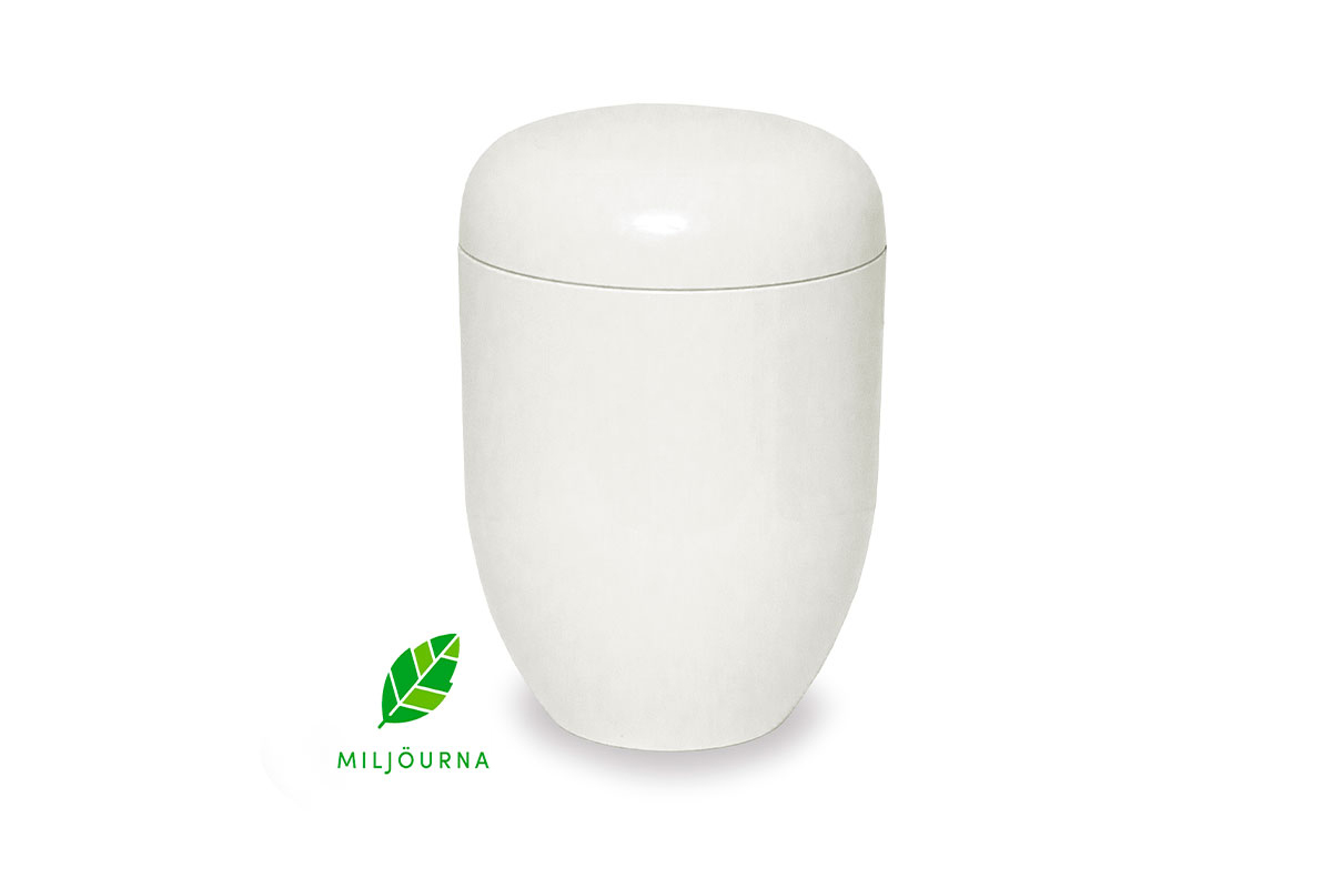 Blank vit är en vacker urna lämplig för gravsättning. Den är målad vit.